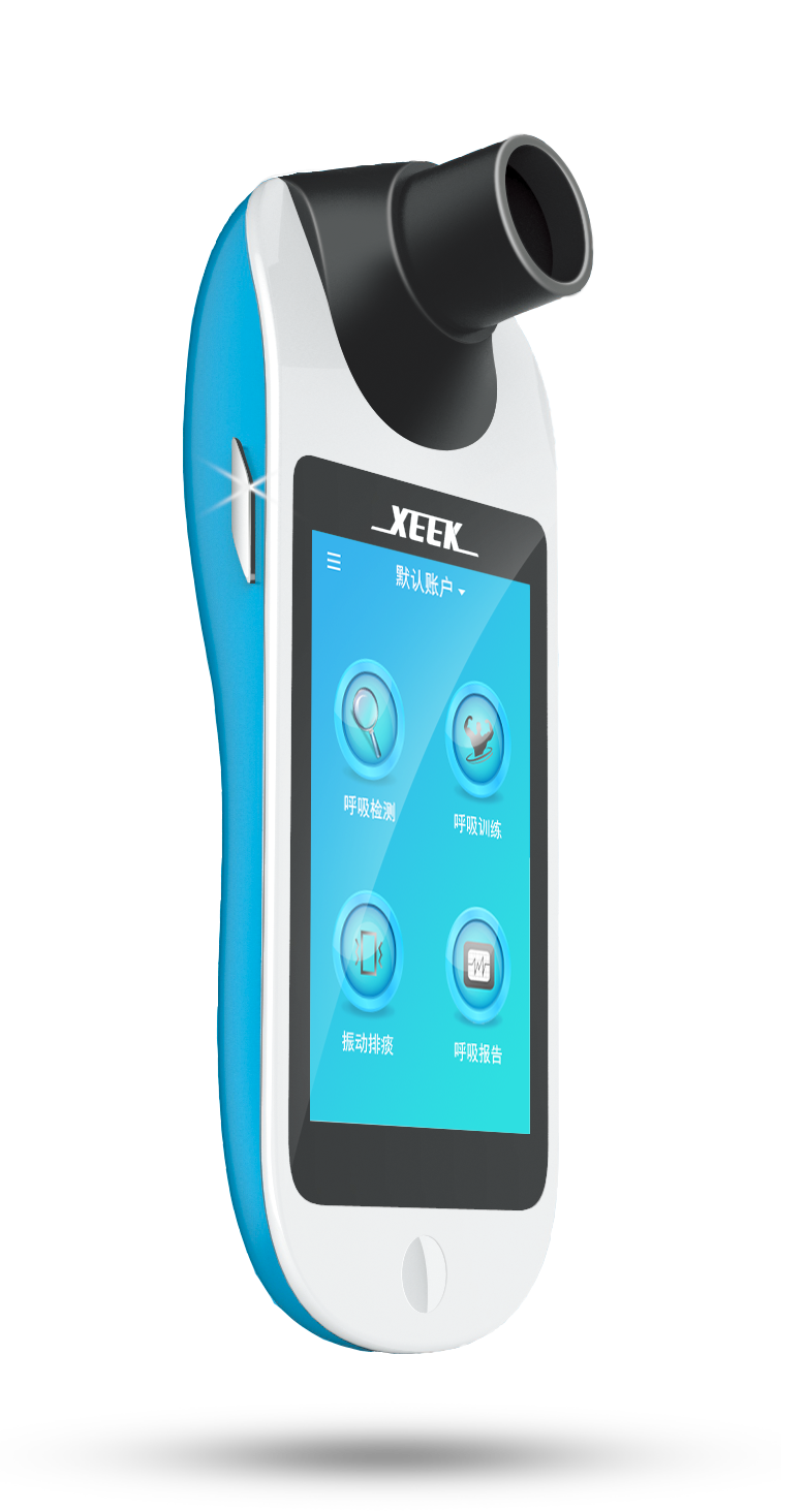 ② 呼氣檢測:嘴含住呼吸過濾器,緩慢吸氣,腹部鼓起,將肺部氣體盡量充滿,接著盡可能快速、用力的深呼氣,直到清空肺部空氣與腹部內收,至少呼氣3次。
